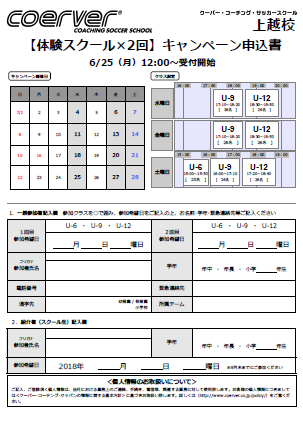 クーバーコーチングサッカースクール上越校からのお知らせ バッティングドーム ホワイトウェーブ > お知らせ > クーバーコーチングサッカースクール上越校からのお知らせ 2018年6月23日 公開 クーバーコーチングサッカースクール上越校からのお知らせでーす! 7月は、通常1回の無料体験が2回も出来ちゃいます!(^^)! お友達も誘って、ぜひご参加ください♬