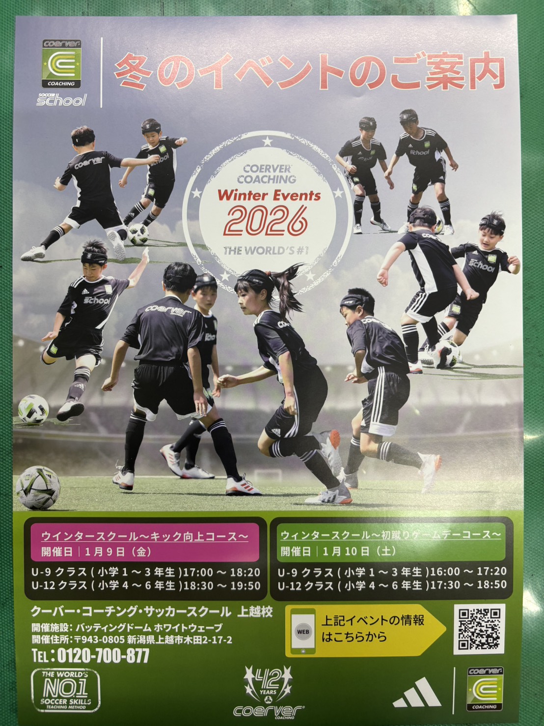 サッカースクール(冬のイベントのご案内) バッティングドーム ホワイトウェーブ > お知らせ > サッカースクール(冬のイベントのご案内) 2025年12月22日 公開 クーバーコーチングサッカースクールの冬のイベントの ご案内をさせていただきます。 詳しい詳細は下記の画像をご参照下さい。 ※スクールに入会していなくても参加できます。 気になる点がありましたらお気軽にお問合せ下さい。 お待ちしております。